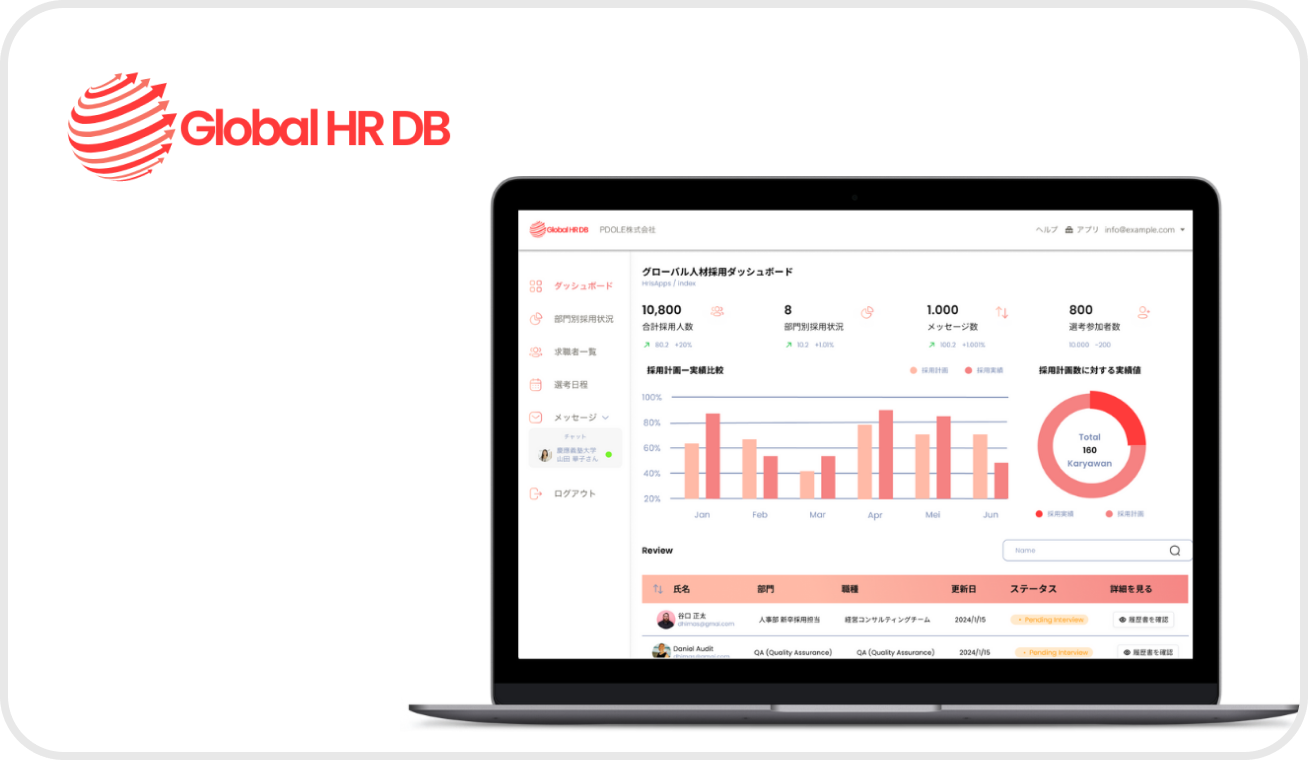 日本人 / 外国人のホワイトカラー職種(エンジニア,企画,営業等)のインターン / 新卒 / 中途 / 副業(業務委託) / フリーランス(業務委託) 採用・発注を実現するSaaS「Global HR DB」